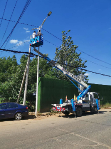 藍(lán)牌路燈維修車施工現(xiàn)場(chǎng)