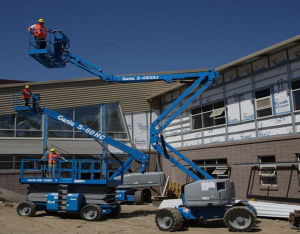 伸縮臂高空車載人高空作業(yè)現(xiàn)場(chǎng)