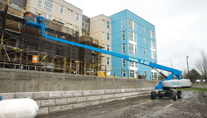 22米高空作業(yè)車外墻刷漆施工現(xiàn)場(chǎng)